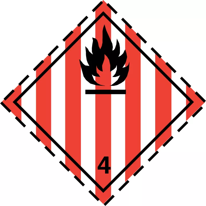 在联合国《关于危险货物运输的建议书 规章范本》(TDG)中,硫被归为第4.1类易燃固体,联合国编号为1350,建议包装类别为Ⅲ类。其危险货物运输象形图为: