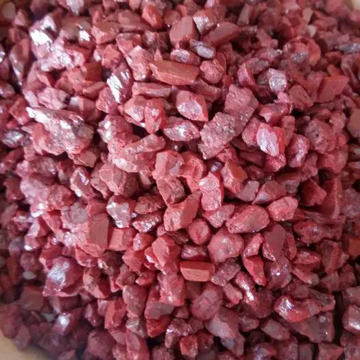 朱砂又称辰砂、丹砂、赤丹、汞沙,是硫化汞的天然矿石,主含硫化汞,还含有雄黄、磷灰石、沥青质等多种物质。外观呈颗粒状或块片状,鲜红色或暗红色,具光泽。体重,质脆,片状者易破碎,粉末状者有闪烁光泽,气微,味淡。药用可清心镇惊,安神明目,用于心悸易惊,失眠多梦,小儿惊风,视目昏花,口疮喉痹等。