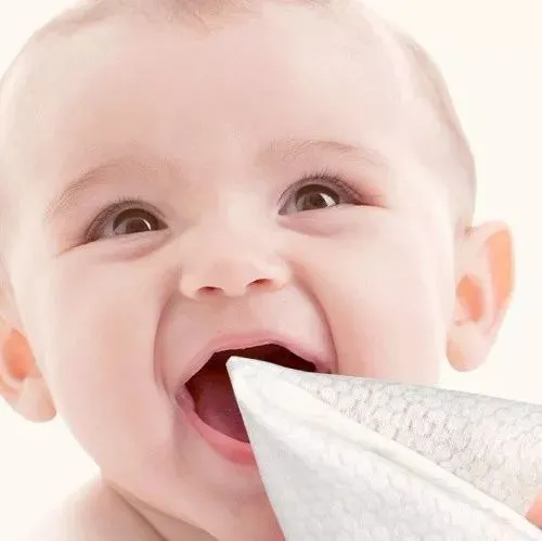 该湿巾为零售包装,原液成分含量:水97%、植物精华3%。其用途是作婴儿口腔护理擦拭,原液成分中只含纯净水及植物精华,植物精华起护肤和芳香的作用,未有其他功能性成分。