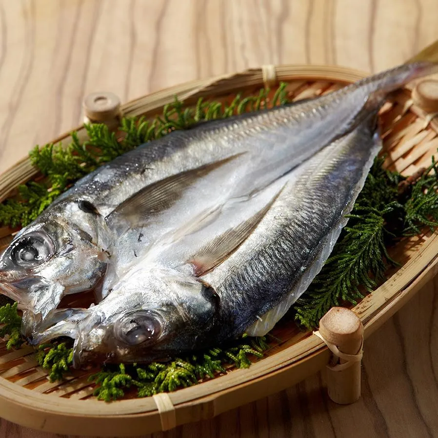 鱼体粗壮微扁,呈纺锤形。头大,前端细尖似圆锥形,眼大、高位、口大,上颌、下颌各有一行细牙,梨骨和胯骨有牙,体被细小圆鳞,侧线全部被棱鳞。体背为暗色,腹部白而略带黄色,2个背鳍相距较远,第二背鳍和臀鳍相对,其后方上下各有5个小鳍,尾鳍呈深叉形,基部两侧有2个脊隆起嵴。竹荚鱼为暖水性集群润游鱼类,常栖息于中层,有时也接近底层。在长区常与蓝圆鲹混粞。仅分布于中国沿海、日本及朝鲜半岛等西北太平洋区。竹荚鱼是江苏沿海常见经济鱼类,产量较大,肉质尚佳,腌制咸鱼或制成咸干品。